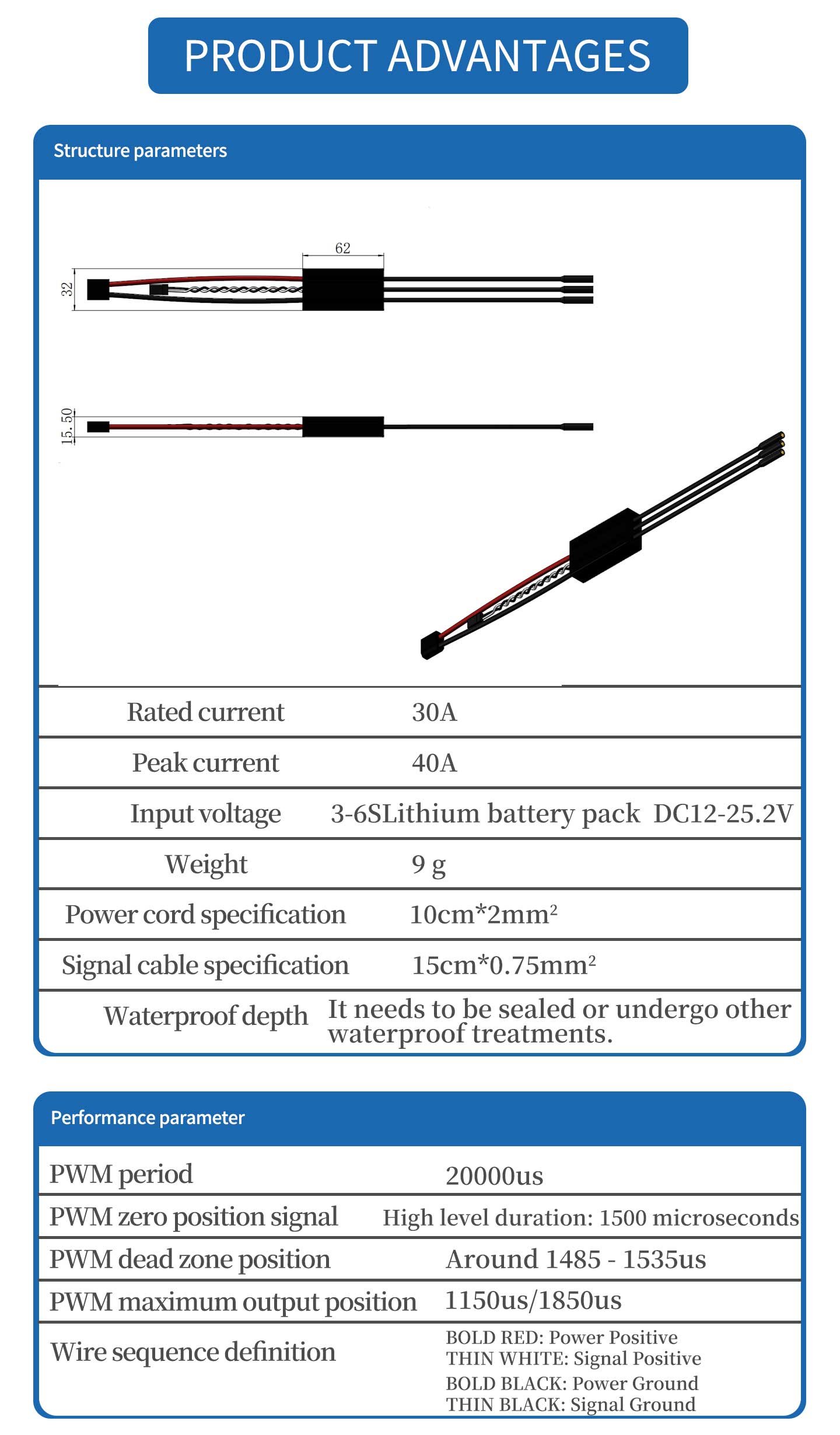 Weihai Yunzhou marine 30A bidirectional brushless ESC for unmanned vessels, dedicated motor speed controller for unmanned boats