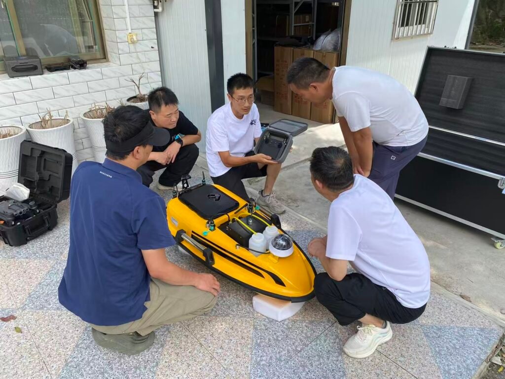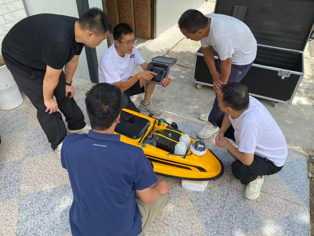 At the training site, the unmanned water quality monitoring vessel with a yellow appearance immediately caught everyone’s attention as soon as it was unveiled. Compared with the traditional manual water quality monitoring methods, unmanned vessels, with their advanced technology, can operate flexibly in complex water environments. It is equipped with high-precision water quality sensors that can monitor multiple key indicators in real time, such as water temperature, pH value, dissolved oxygen, and heavy metal content. These sensors are like the “sensitive antennae” of unmanned ships, capable of precisely capturing subtle changes in the water body and providing a detailed and reliable data foundation for subsequent water quality analysis.